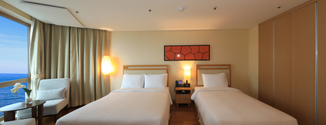 상세정보- 제공서비스 초고속 WI-FI 및 인터넷회선(무료), 무료생수2병, 무료 차 서비스, 피트니스(무료), 영아침대(무료) - 편의시설 LCD TV(Pay TV), IP Phone, 개별 냉/난방, 원적외선/음이온 공기청정, 비데, 오리털침구, 샤워부스, 티포트, 개인금고, Working Desk, 냉장고, 체중계, 헤어드라이어, 슬리퍼, 욕실용품, 목욕가운 - 객실현황 객실 크기 보유객실수 트윈 오션뷰 50㎡ (15평) 40 더블 오션뷰 50㎡ (15평) 예약 및 문의 서울예약실 1577-9766, 제주예약실 064-720-6700